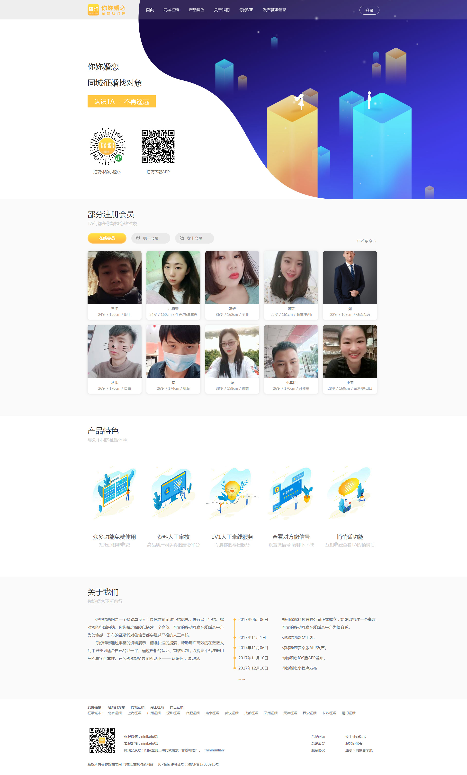 你妳婚戀網致力于搭建一個健康和諧,高效可靠的婚戀平臺,為用戶提供尋找愛情,尋找伴侶服務,通過搜索發信和心靈匹配結合的方式,幫助各個年齡階段的單身人士在茫茫人海中找到Mr.Right。公司有嚴格的審核機制和嚴格的認證方式,嚴謹,嚴肅的管理模式,提高平臺用戶的真實性和可靠性。